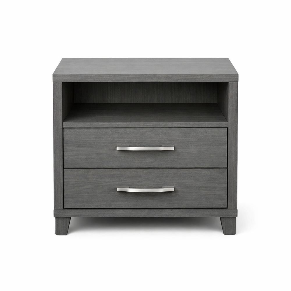 Wooden Nightstand with Two Drawers and Open Shelf Gray
