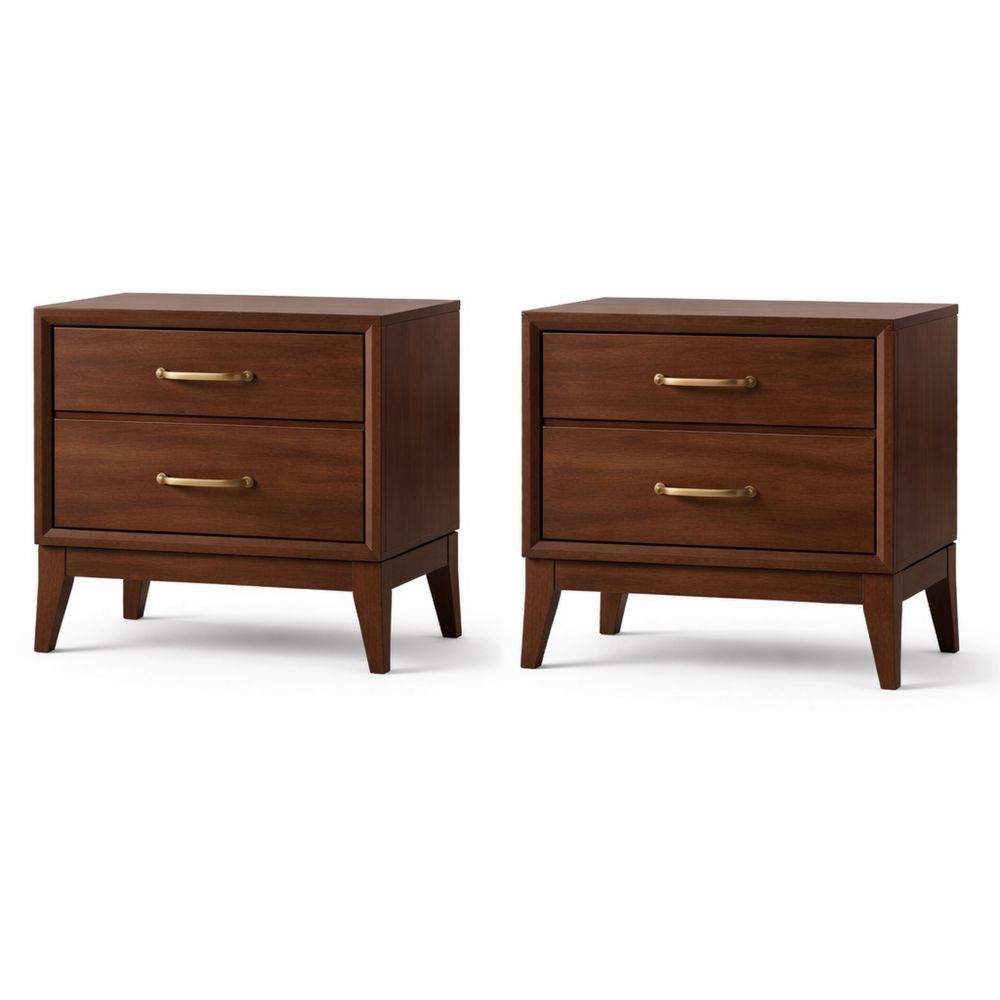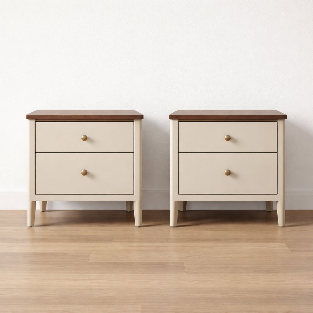 Wooden Two-Drawer Nightstand Set with Brass Handles 60cm H x 50cm W x 40cm D