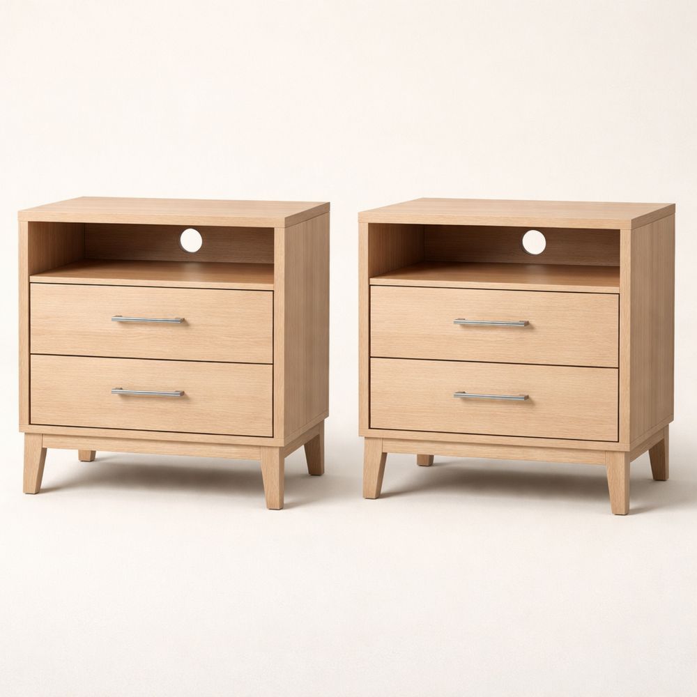 Set of 2 Wooden Nightstands with Two Drawers and Open Shelf Natural Finish 19.7in x 15.7in x 23.6in