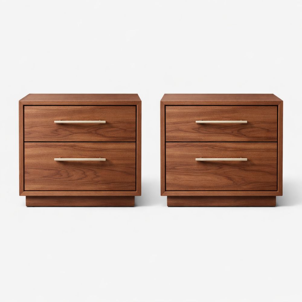Walnut Two-Drawer Nightstand Set with Metal Legs 20x15x25 Inches
