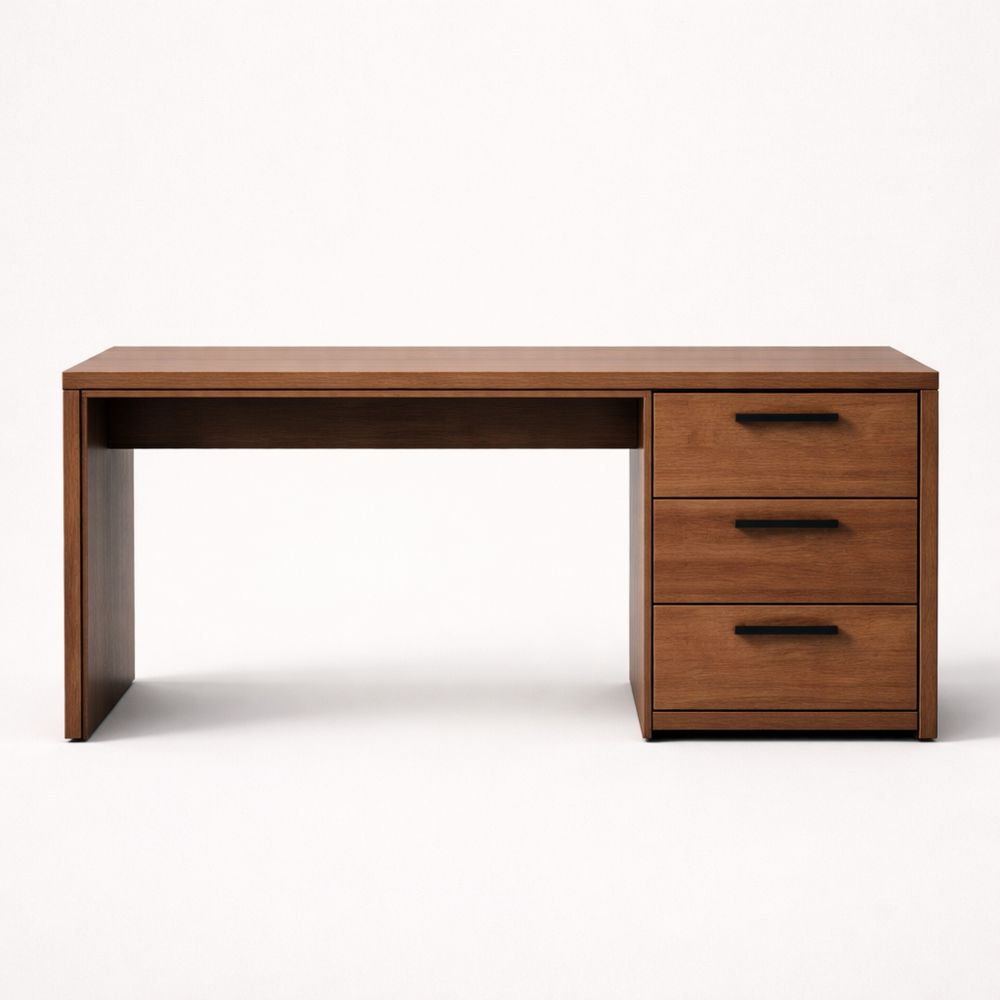 Wooden Office Desk with Three Drawers Natural Finish