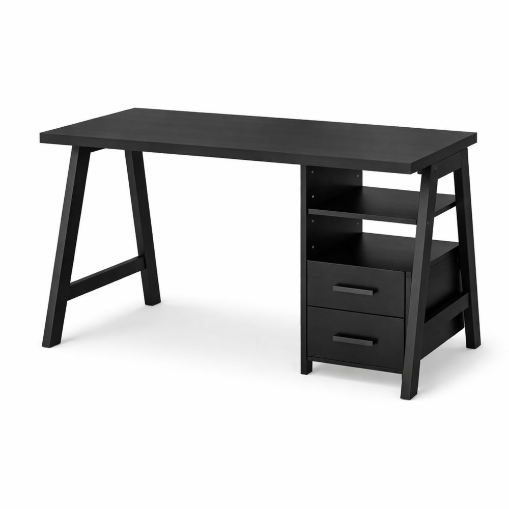 Wood Desk with Three Drawers and Black Metal Legs