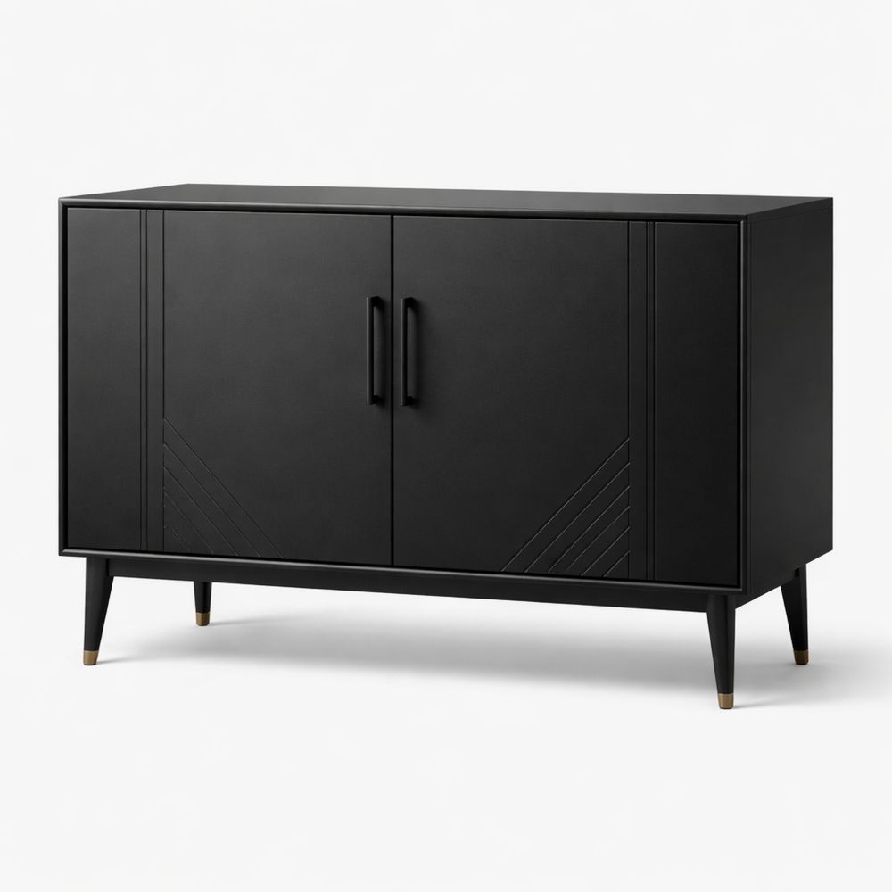 Black 2-Door Storage Cabinet with Wood and Metal Accents
