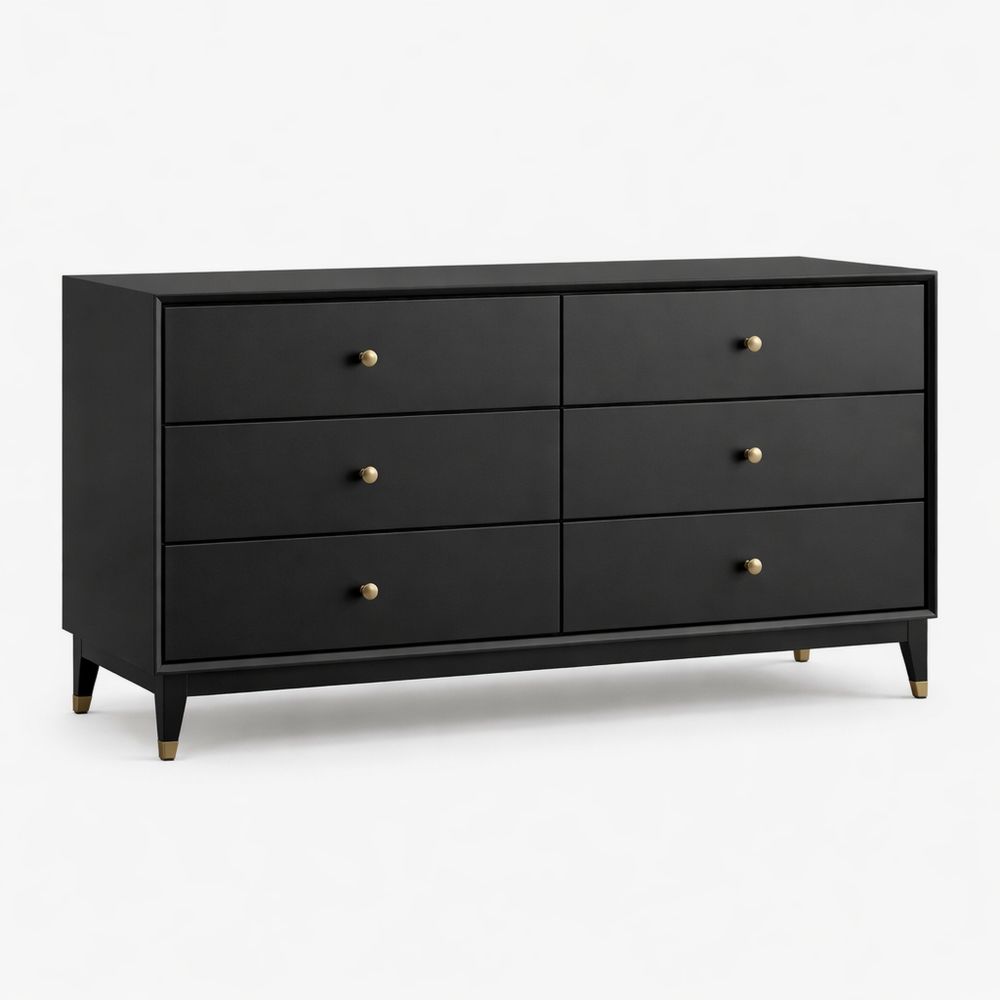 Black six-drawer cabinet, MDF wood, 152 × 46 × 82 cm