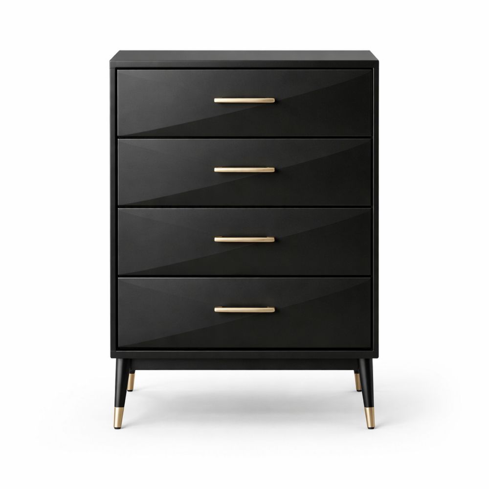 Black Wood Chest of Drawers with Metal Handles 4 Drawers 80x60x40cm