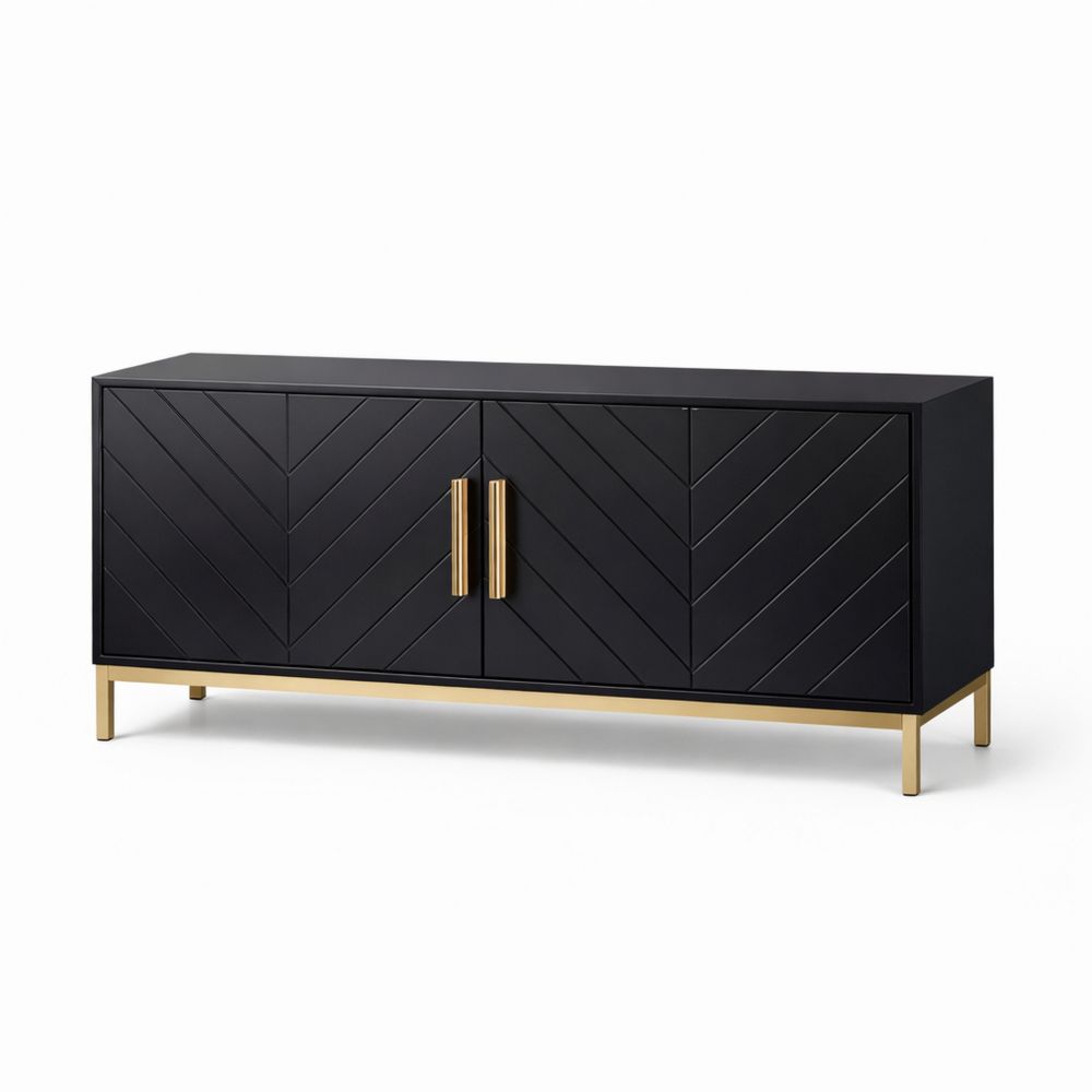 Black Wood Sideboard with Gold Metal Legs 180cm