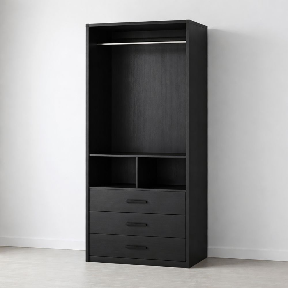 Black Wood Wardrobe with Hanging Rail and Drawers 200cm x 100cm x 50cm