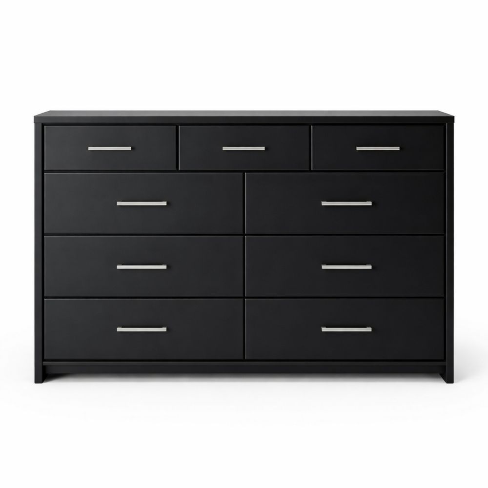 Black Wooden Dresser with 9 Drawers