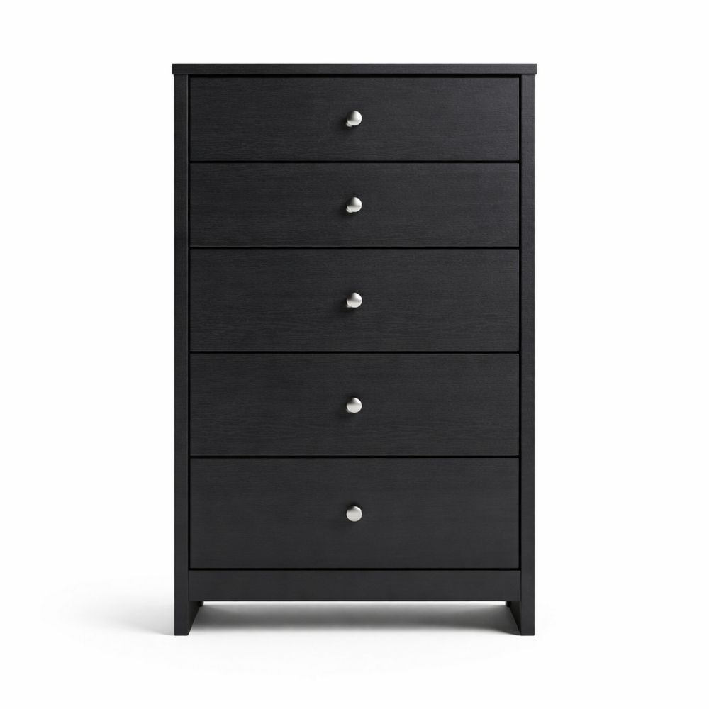 Black wooden five-drawer cabinet, 132 cm high