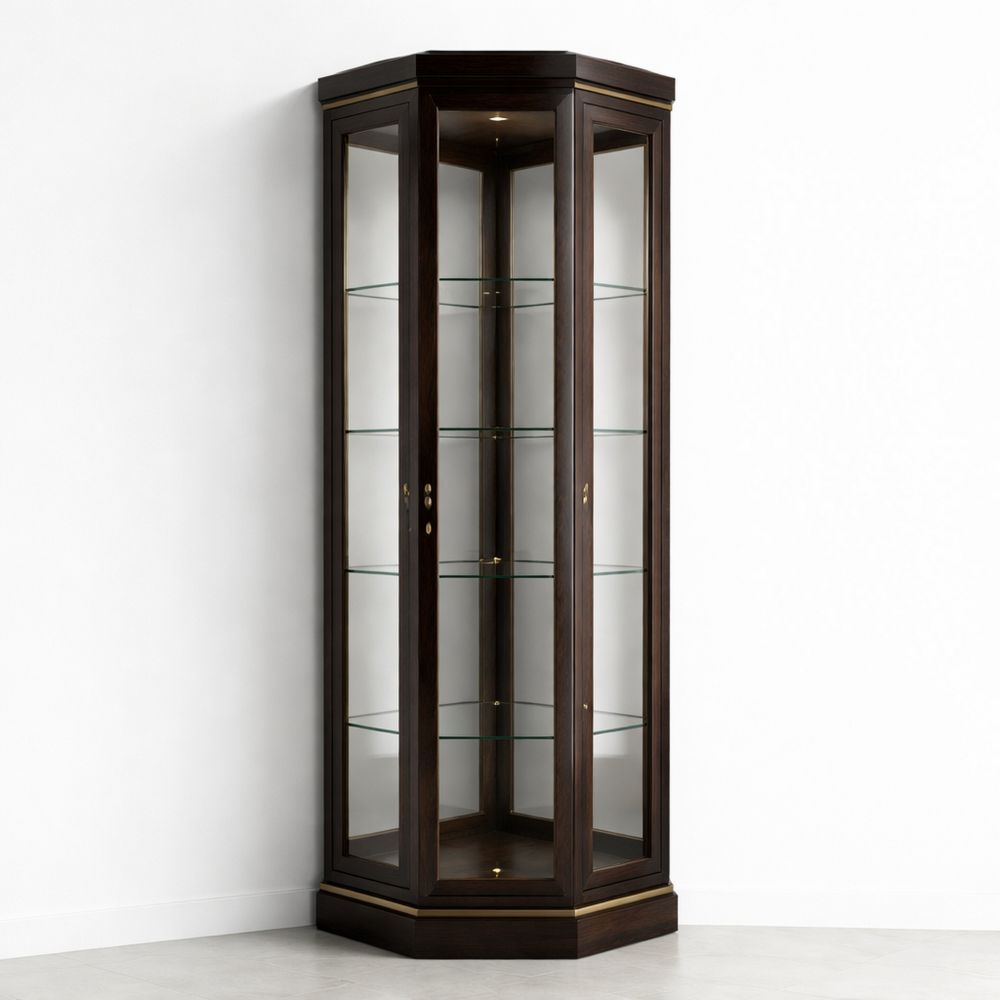 Dark Wood Corner Display Cabinet with Tempered Glass Shelves