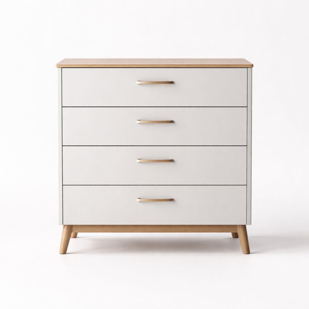 Four-drawer cabinet, MDF and pine, white, 78 × 45 × 90 cm