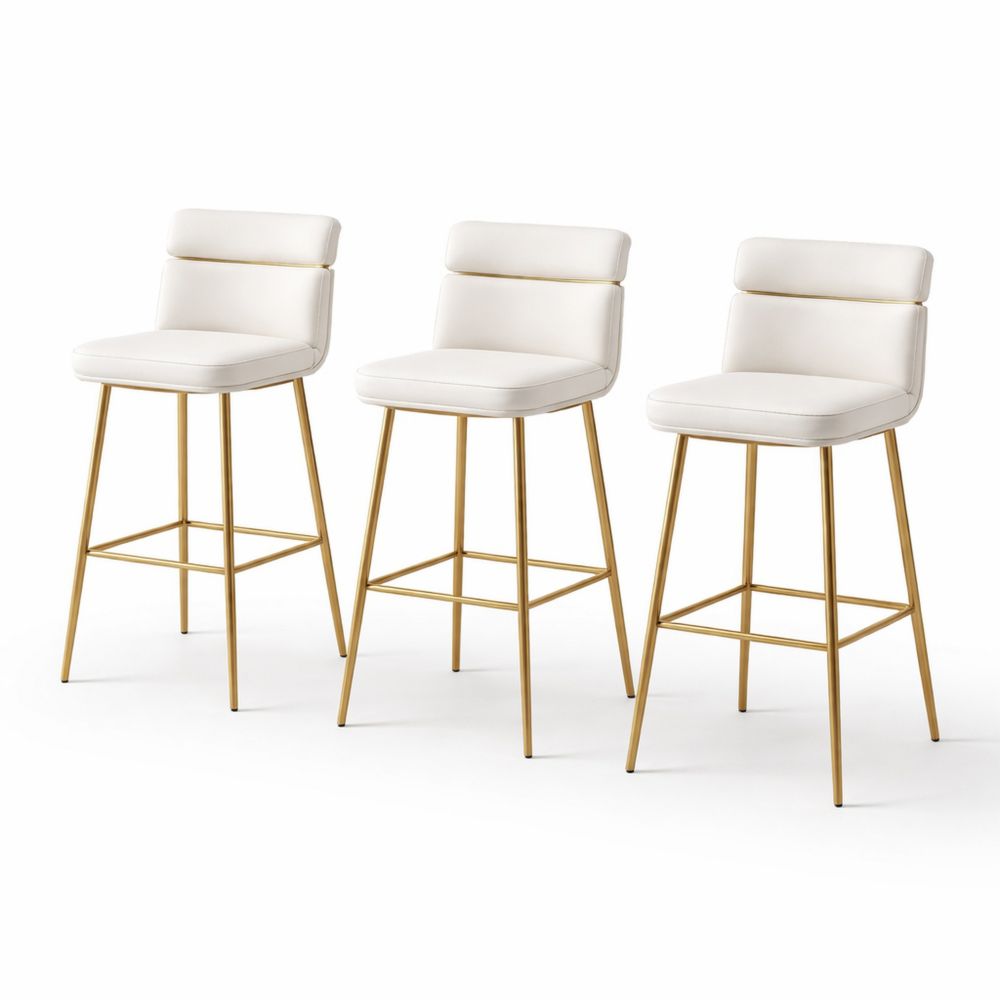 Set of 3 White Faux Leather Bar Stools with Gold Metal Legs