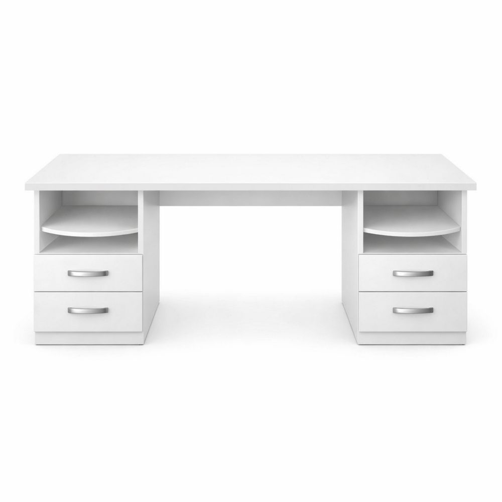 White MDF Office Desk with Drawers and Shelves 150cm x 60cm x 75cm