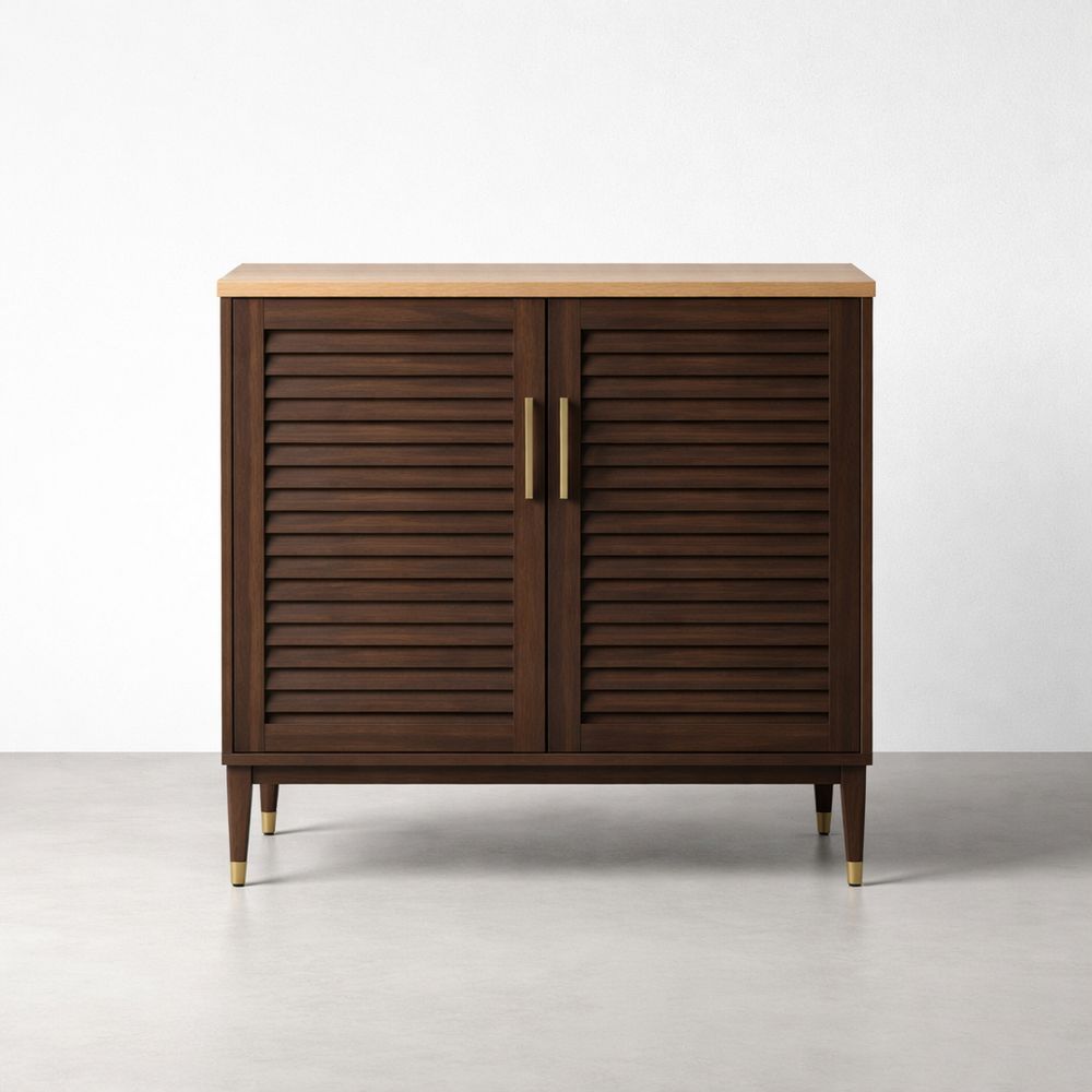 Wooden Two-Door Cabinet with Brass Handles 91cm Wide